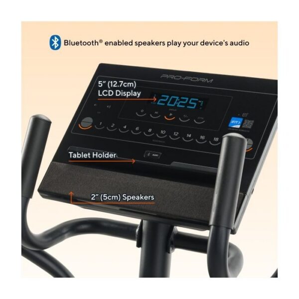 Il display LCD da 5” mostra in tempo reale velocità, calorie bruciate, watt, tempo e distanza percorsa. Il supporto per dispositivi ti permette di posizionare smartphone o tablet per seguire allenamenti iFIT o contenuti multimediali, mentre due altoparlanti integrati da 2” e la connessione Bluetooth per cuffie offrono un’esperienza immersiva e motivante.