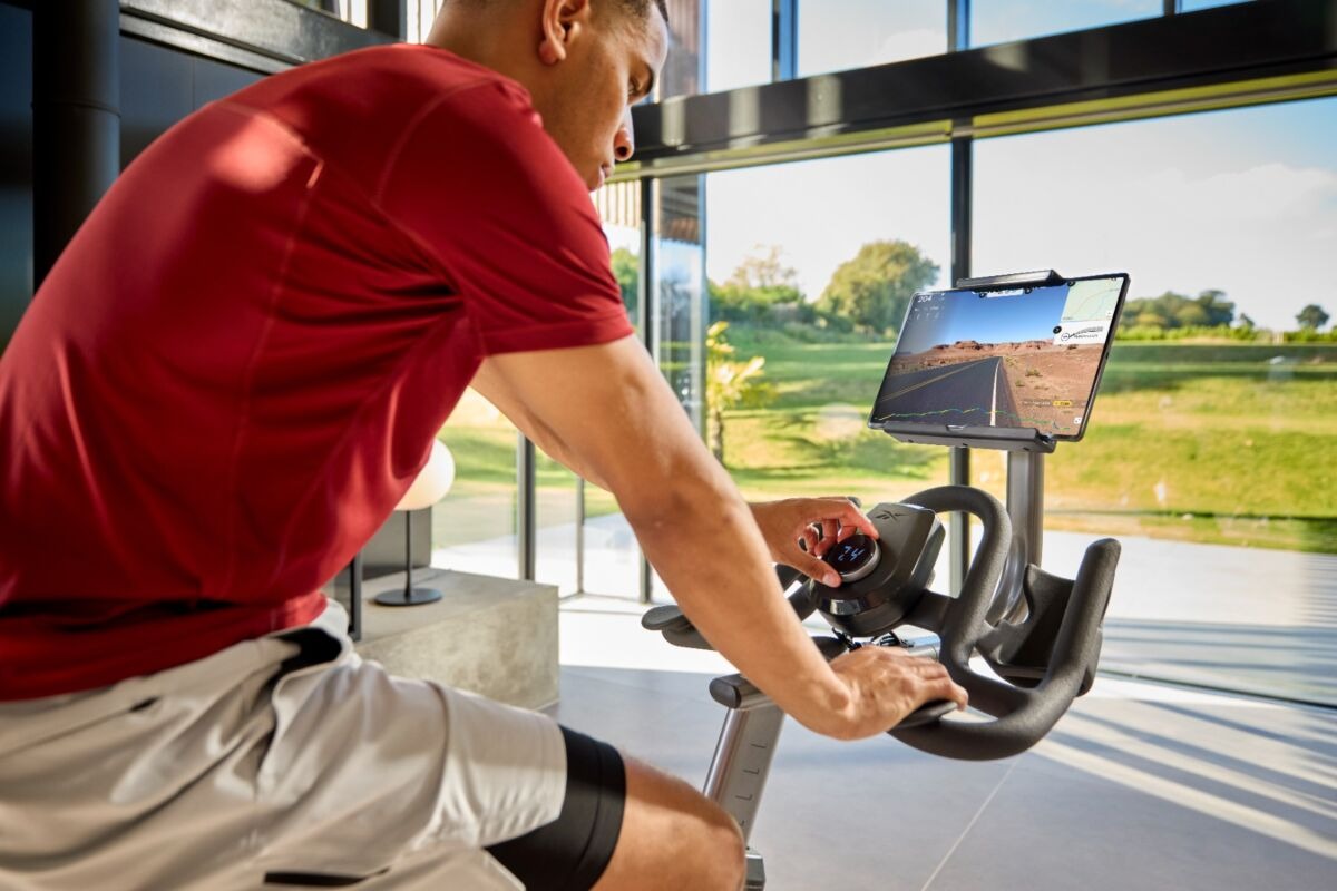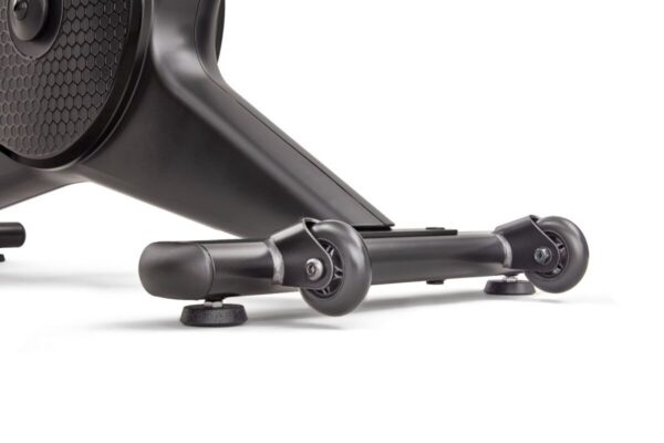 La bike è dotata di supporto rotante per dispositivi fino a 15,6”, porta USB-C, doppi porta-borraccia, ruote di trasporto integrate e livellatori per stabilità su qualsiasi superficie. La struttura robusta supporta utenti fino a 150 kg e il ricevitore integrato permette l’uso di fasce cardio Bluetooth 4.0 e 5.3 kHz per monitoraggio preciso.