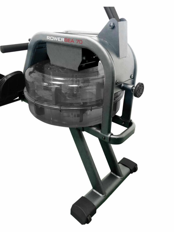 La struttura è realizzata con un binario in alluminio e una seduta imbottita scorrevole, garantendo movimenti fluidi e senza scossoni grazie ai rulli con cuscinetti a sfera. Il sistema di resistenza ad acqua offre 6 livelli regolabili, adattando l’intensità dell’allenamento al volume d’acqua presente.